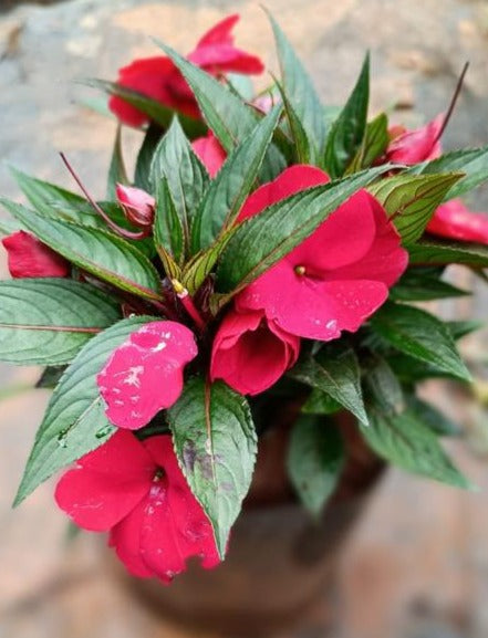 Chinese Balsam Red (Impatiens balsamina) Rare All Time Flowering Live Plant