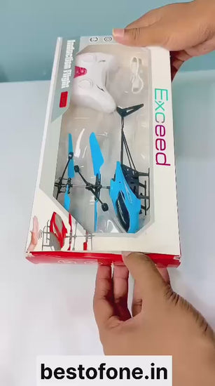 Rechargeable Flying Helicopter Toy with Hand Sensor, Remote Control & LED Lights